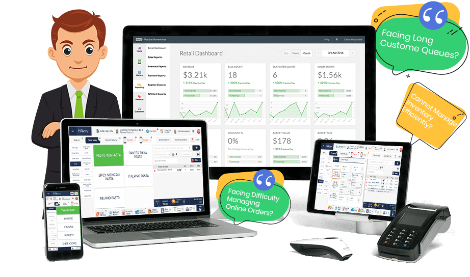 - Manage long lines effectively during peak deals, or gleeful seasons with instant billing counters.